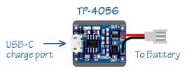 Shown at left and below is a rechargeable battery in a camera equipped with its own battery management board, matched with battery to safely maintain and charge lithium-ion batteries. In this case, we have a 1000mAh (1A) lipo battery connected to a TP-4056 battery management board providing charge functions.